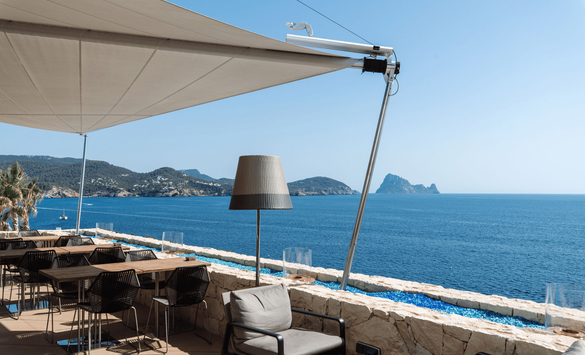 Stay refreshed all day with a selection of fine snacks and cooling drinks at this poolside chiringuito with spectacular views of Es Vedrà as your backdrop.