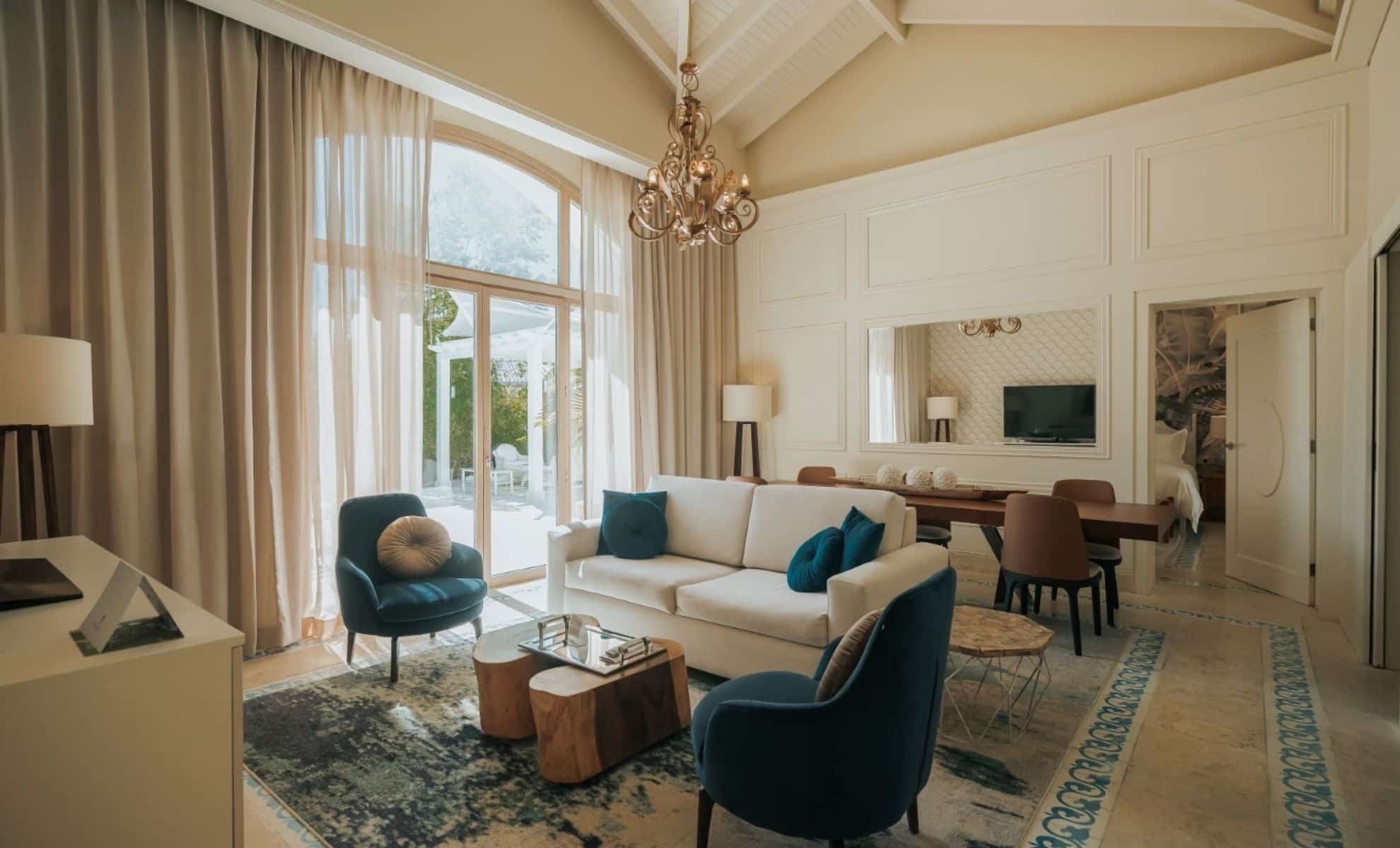 Eden Roc Cap Cana has a selection of luxury suites and villas, each with an aura of international glamour. High ceilings, wood beams and expansive windows create a seamless connection to the outdoors. And interiors by Milan designers Carlo Belgir and Marina Nova incorporate a soft colour palate accented by rich woods, exquisite fabrics, modern accessories and local art.