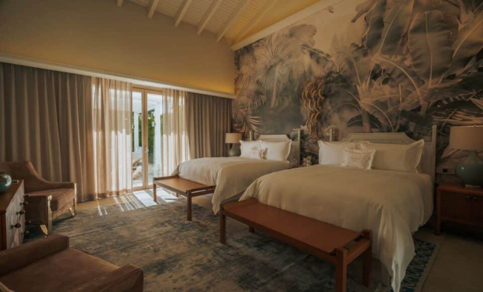 With architecture and design radiating beach-front luxury vibes, these two-bedroom villas boast an infinity pool overlooking the Caribbean Sea and a large wrap-around terrace, perfect for al fresco dining. You can even enjoy an in-villa spa treatment. Amenities include: air-conditioning, private airport transfers, daily gourmet breakfast served at the villa, personal butler service, two electric golf carts, luxury bed linens, plush bathrobes and slippers, 55” flat-screen TV, Acqua di Parma bath products, Nespresso coffee machine and tea maker, mini-bar and complimentary WiFi.