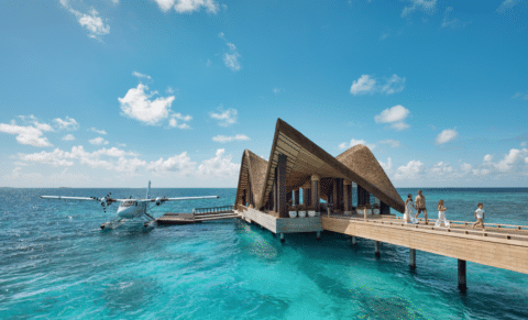 Boasting a separate unique adults-only island called One Banyan Island, the resort is well-suited for couples who want a romantic hideaway, as well as families with children. The main part of the resort is home to a string of beach villas surrounded by palm trees, two infinity pools and a spiral water slide into the ocean for kids. Meanwhile, the luxurious water villas over the lagoon, and honeymoon villas on the exclusive island of One Banyan, are a couple’s dream.