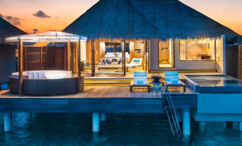 Luxuriate. Indulge. Immerse! This Luxuriously appointed three bed-room Suite at the tip of the Pier with amazing views all-around, features a stunning 35 Sq.m over-water pool ) with fiber optic mood lighting, a personal gym, a maid’s room with separate access, a small kitchenette, an outdoor dining pavilion with private bathrooms for every bedroom. This majestic Suite truly ups the ante from a Bespoke Luxury perspective! Simply the very BEST!